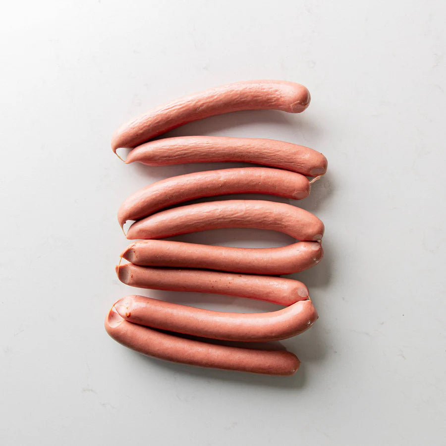 Butcher Shoppe hot dogs are made in-house by our expert sausage makers using 100% Wagyu beef and hand twisted in natural casings.