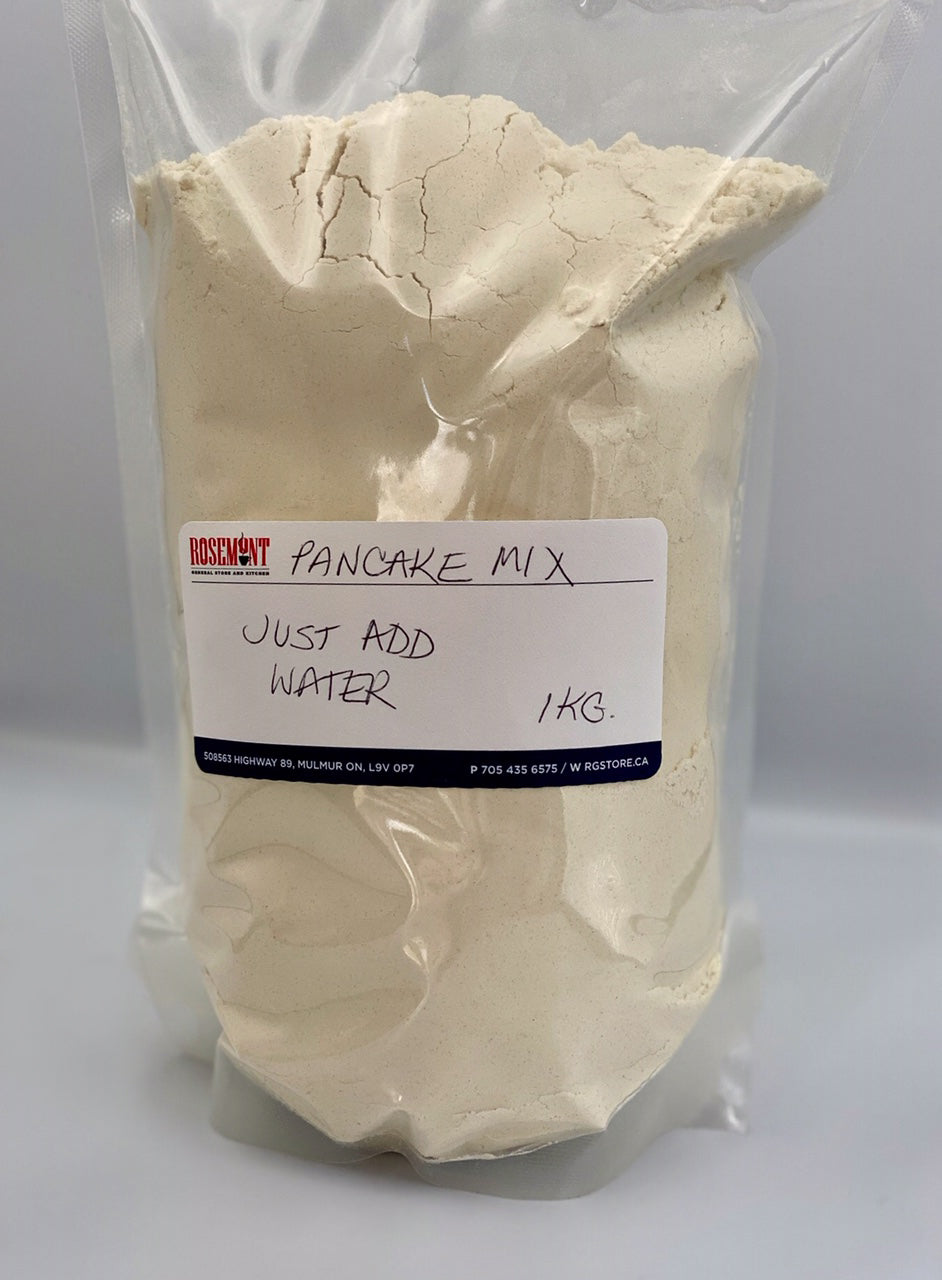Just add water to our pancake mix. This is a perfect pairing with our Sugar Shack maple syrup.