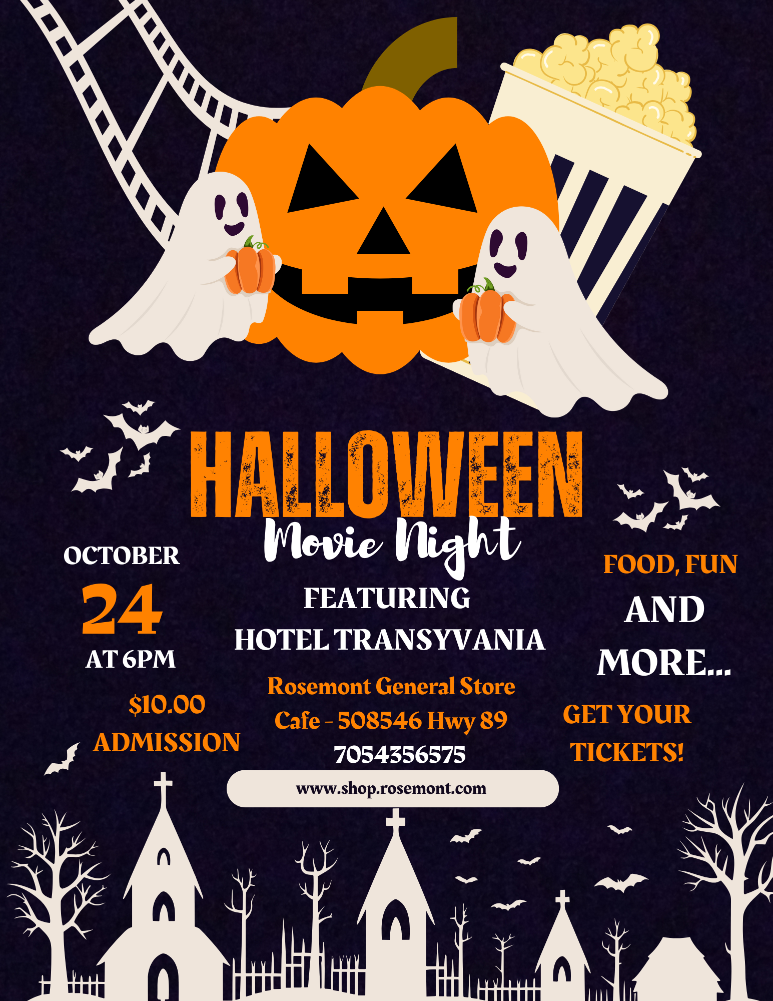 We’re screening Hotel Transylvania on October 24th at 6:00pm, plus serving hot pizza and a chance decorate-a-pumpkin for each creative little monster!