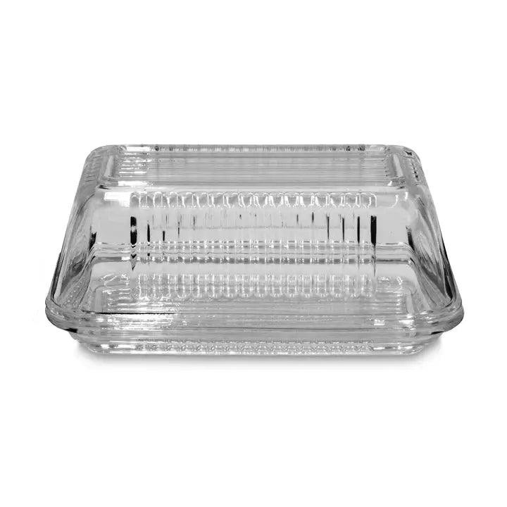 Keep butter fresh and beautifully displayed with this elegant glass butter dish. Designed to hold approximately one pound of butter, it's perfect for serving guests or everyday refrigerator storage.